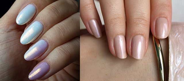 Перламутр. Мерцающее перламутровое покрытие смотрится очень нежно. Важно, чтобы цветовое решение было нюдовым.