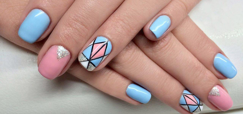 Кстати, «геометрия» отлично сочетается с другими техниками, например с французским, градиентным или мраморным маникюром, при выполнении геометрического маникюра используют обычные и гель-лаки, нередко творение Nail-art,а эффектно дополняют глиттером, стразами, серебристой или золотой лентой.