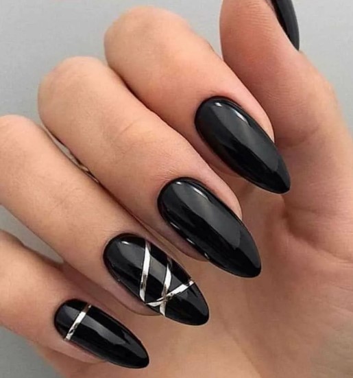 Особым шиком являются черные ногти в сочетании с оттенками благородных металлов – золото, серебро или бронза. Такой маникюр смотрится роскошно, благородно, привлекает внимание и показывает, что у его обладательницы есть вкус