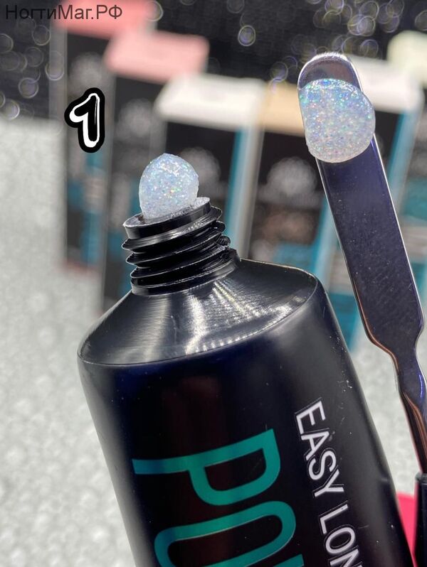 Оттенок Global Fashion Полигель 001 - прозрачно - белый с микроблёстками.