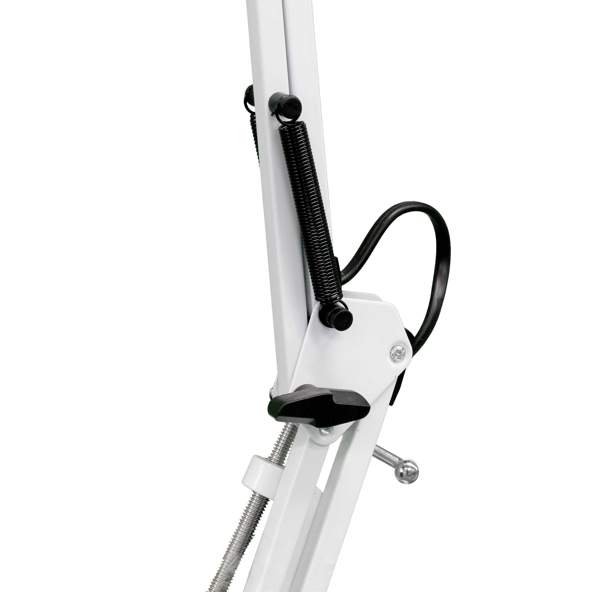 Плечо лампы на пружинных шарнирах дает возможность поворачивать ее в любую сторону, менять угол, высоту наклона и фиксировать ее в нужном положении. Удобно крепится к столу / кушетке / полке металлической струбциной.