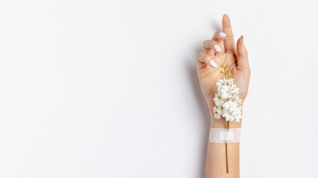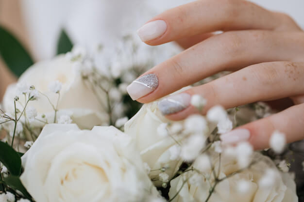 Великолепной идеей станет свадебный маникюр под цвет букета. Если, конечно, это не радужные розы, а сочетание белых цветов с контрастными вкраплениями.
