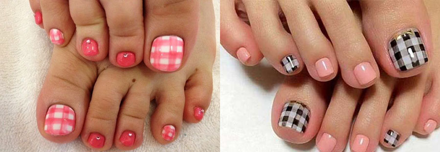 Этот тренд заслуживает того, чтобы хоть раз за лето ему последовать. Наиболее выигрышно смотрится ансамбль в виде клеточки на больших пальцах и монохрома (яркого или нет — неважно) на остальных.