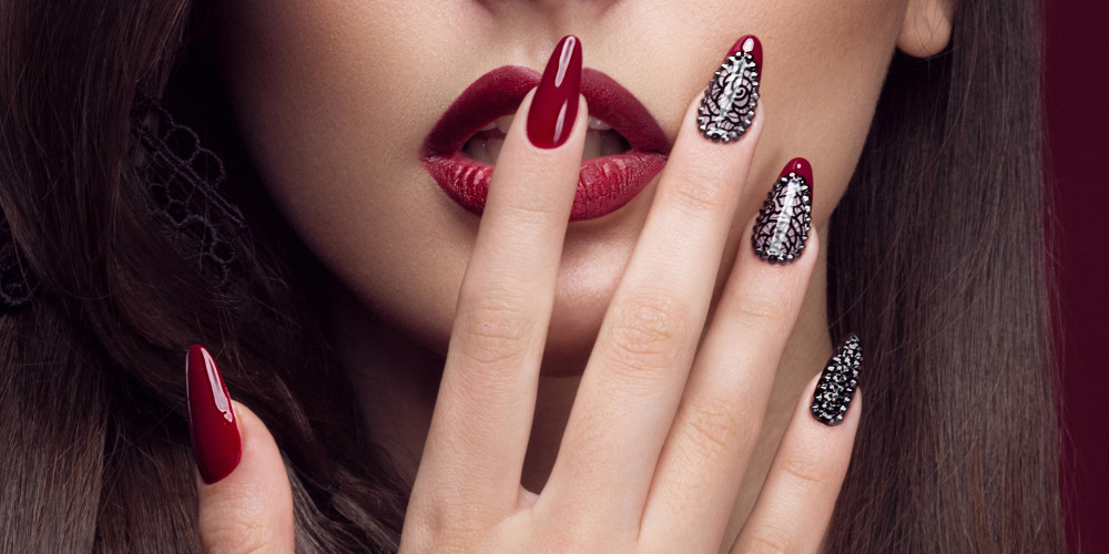 На ногтях заостренной формы эффектно смотрится декоративный френч. Расписанные оригинальными узорами, украшенные бисером, кусочками изящного кружева или лепниной ноготки превращаются в роскошное произведение искусства, становясь предметом гордости для своей владелицы и причиной восторженных взглядов.